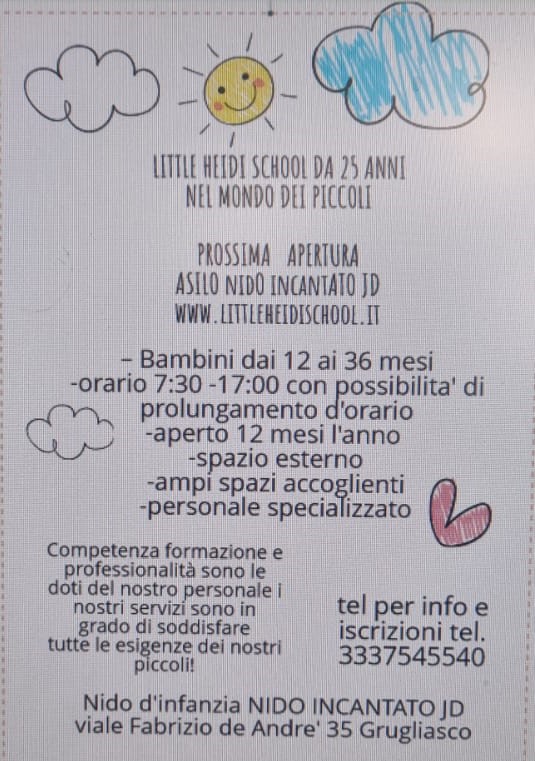 Prossima apertura dell’Asilo Nido NIDO INCANTATO JD a Grugliasco